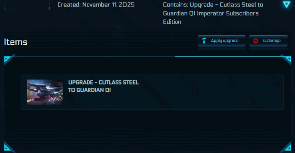 Drake Cutlass Steel to Mirai Guardian QI Upgrade CCU